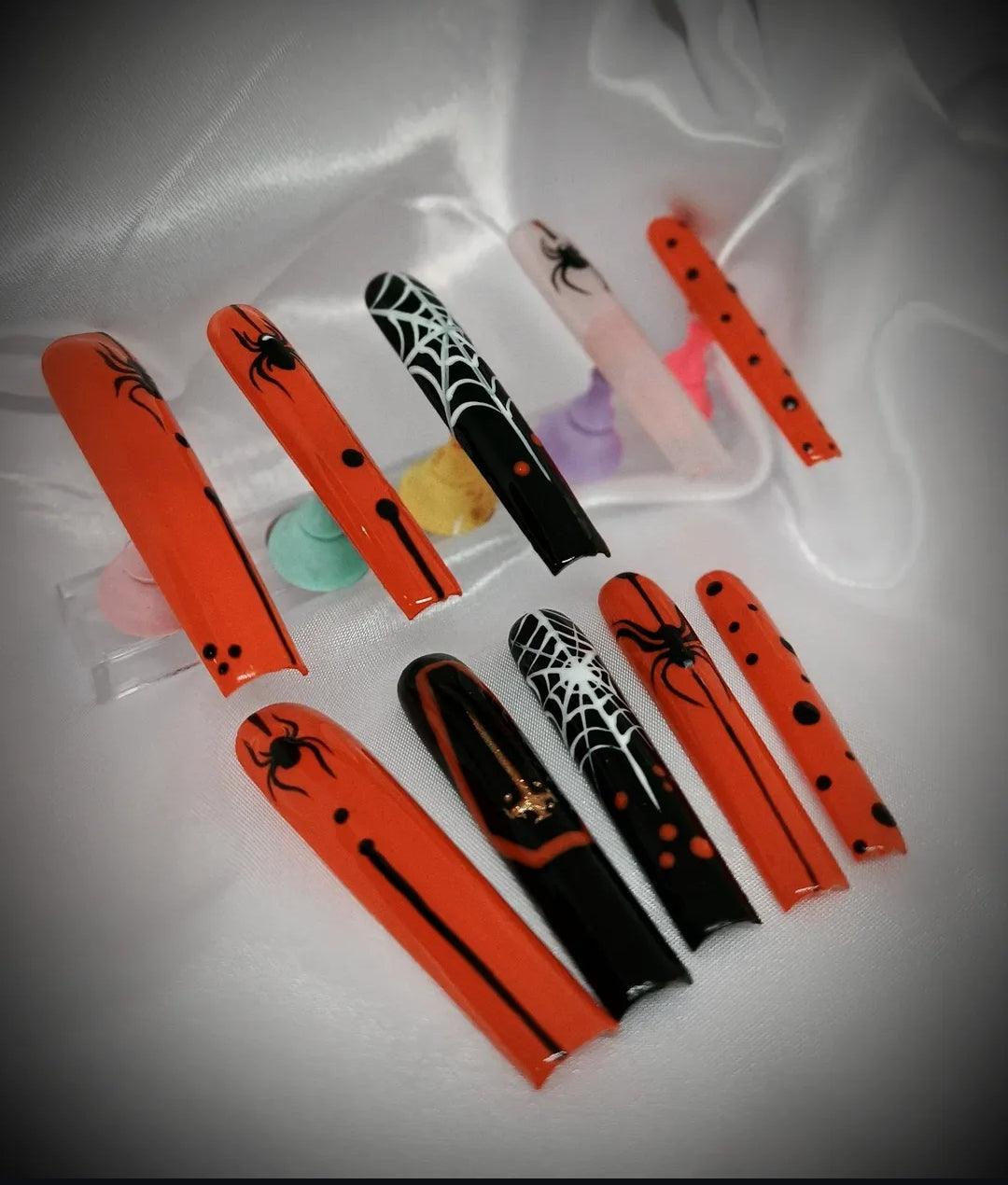 Hand-painted λεπτομέρειες εμπνευσμένες από Halloween vibes, ιδανικές για εμφανίσεις που θέλουν χαρακτήρα χωρίς υπερβολή.