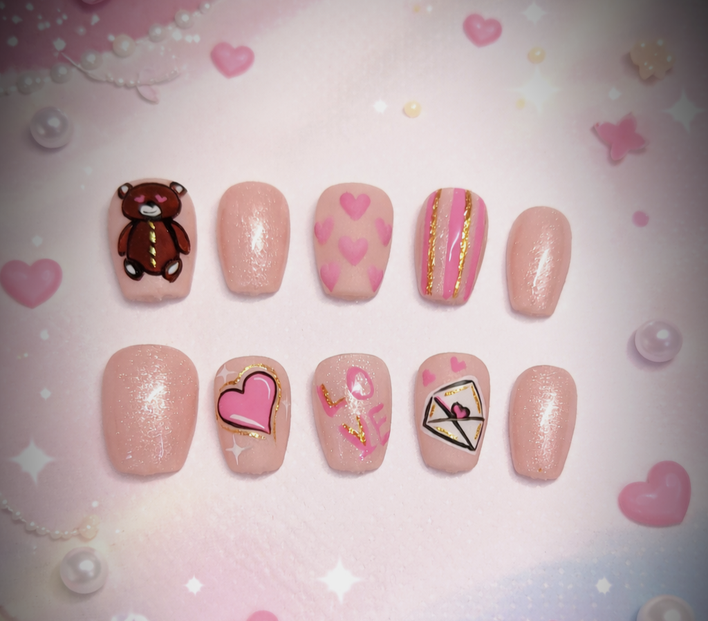 Χειροποίητα press on νύχια σε απαλές ροζ αποχρώσεις, εμπνευσμένα από την πιο γλυκιά πλευρά της αγάπης 💗